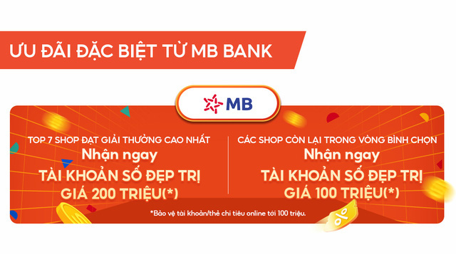 Nhà tài trợ MBBank cũng đồng hành cùng Shopee tôn vinh sản phẩm Việt khi trao tay tài khoản số đẹp trị giá 200 triệu đồng dành cho top 7 shop chiến thắng, và loạt tài khoản số đẹp trị giá 100 triệu đồng dành cho những nhà bán hàng còn lại trong vòng bình chọn - Ảnh: Shopee